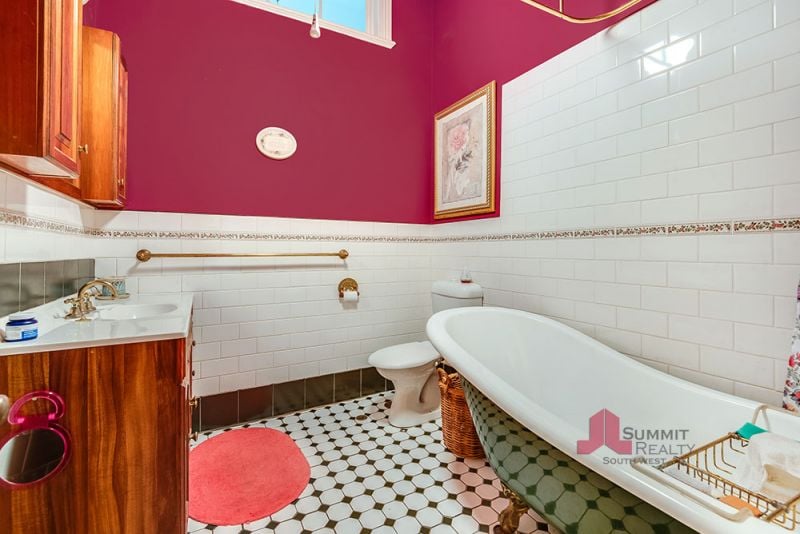 Solid brick construction with classic ‘tuck pointing’, clay roof tiles and verandas all around. Four good sized bedrooms off master hallway, main bathroom with claw foot bath and second shower/ toilet off laundry.