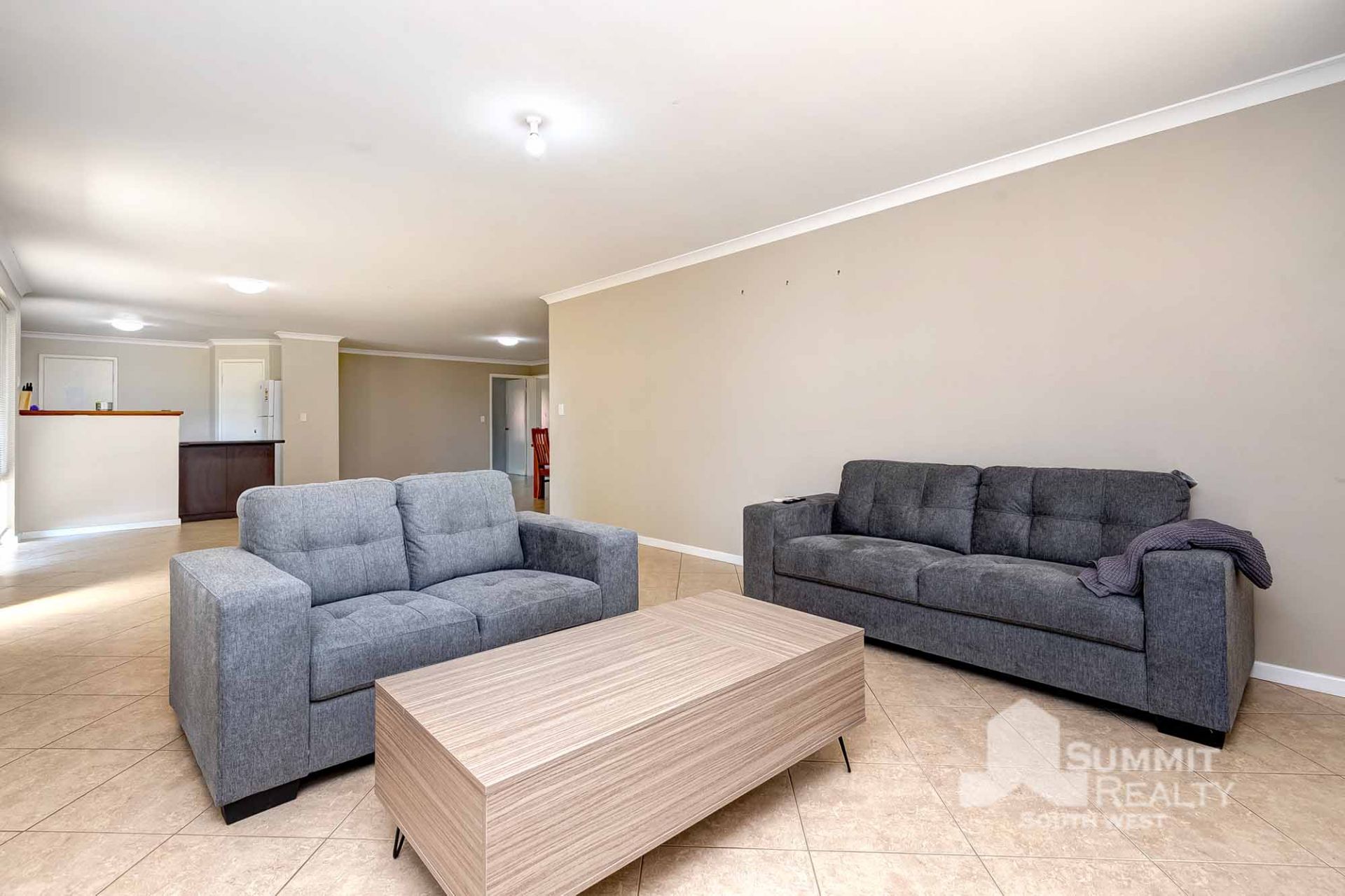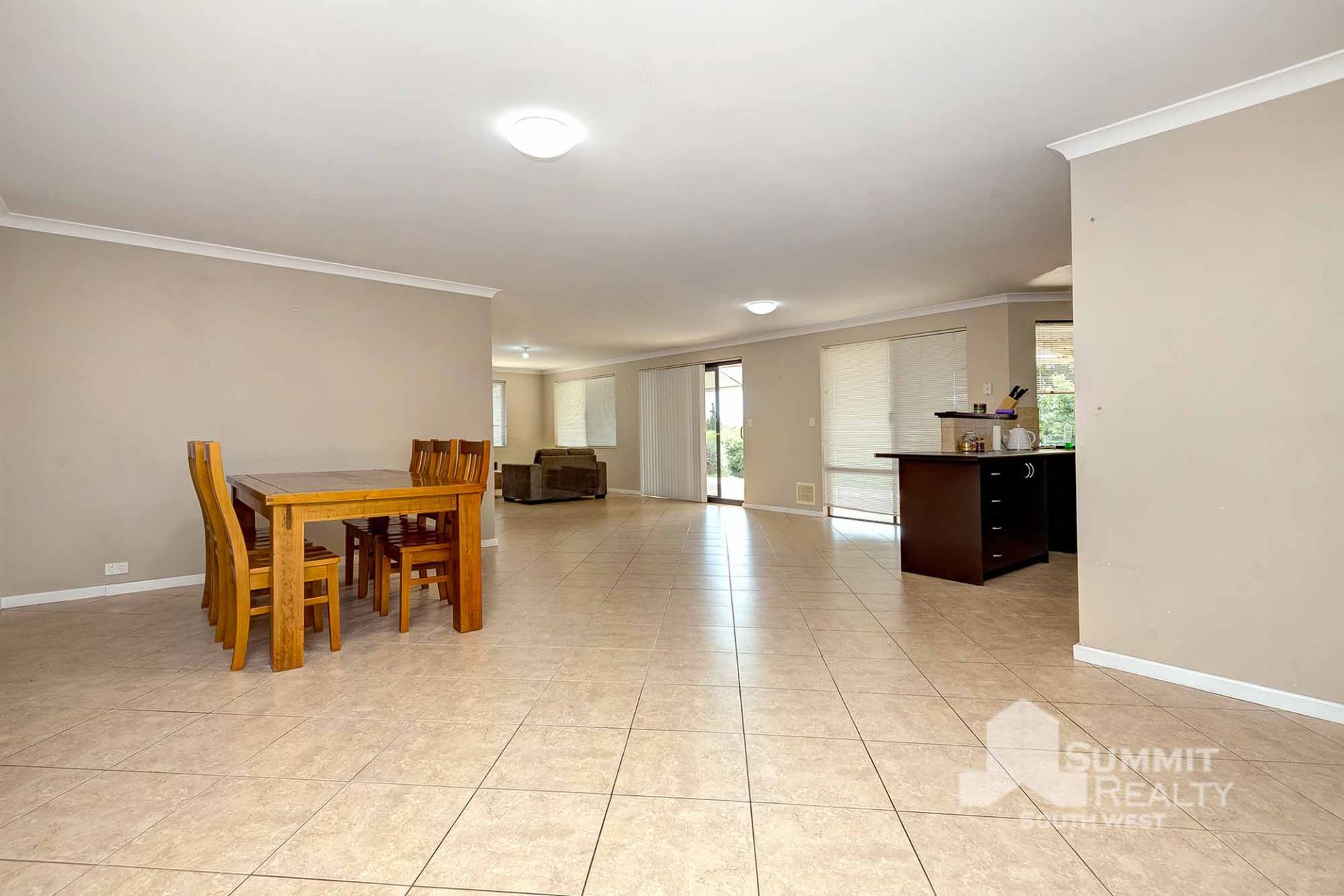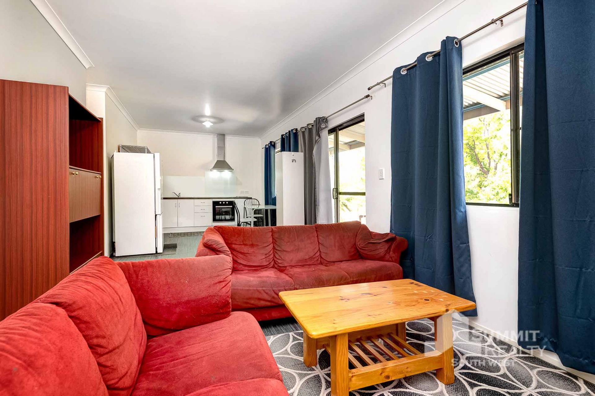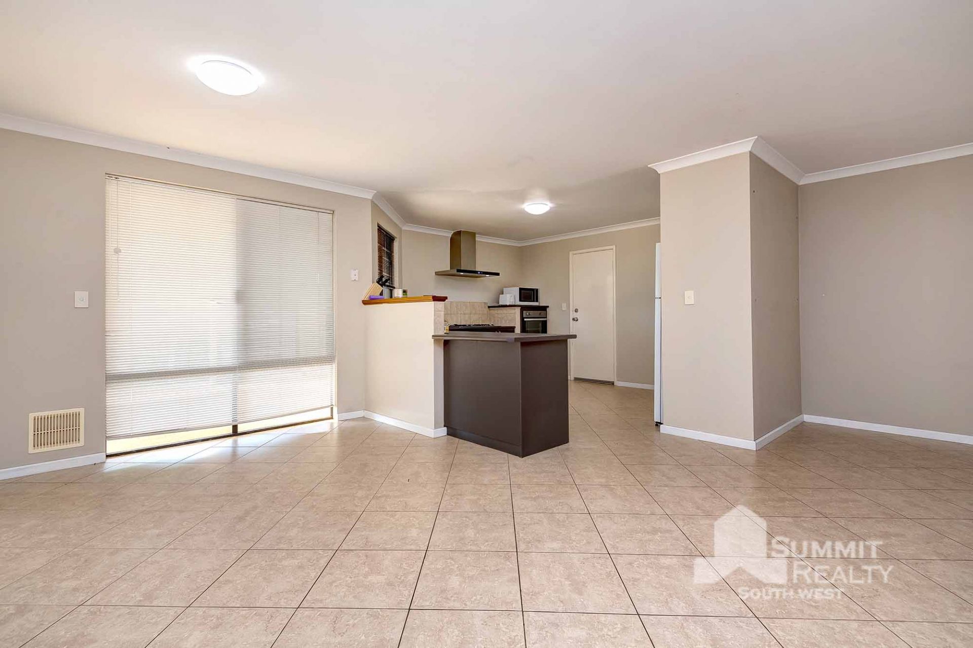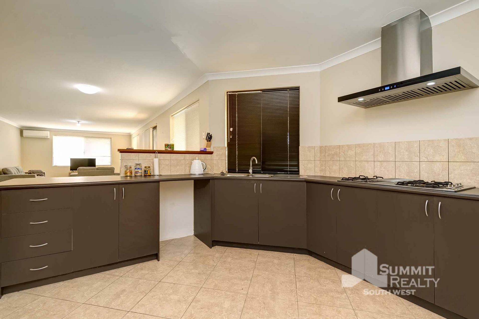 – Open plan kitchen living and dining area with air conditioning
