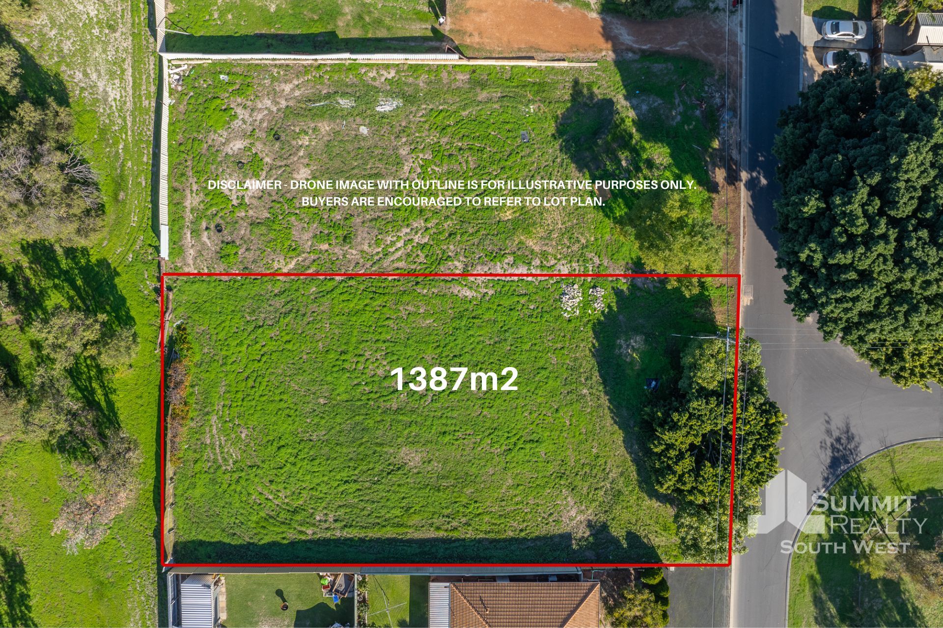 DISCLAIMER – DRONE IMAGE WITH OUTLINE IS FOR ILLUSTRATIVE PURPOSES ONLY. BUYERS ARE ENCOURAGED TO REFER TO LOT PLAN.