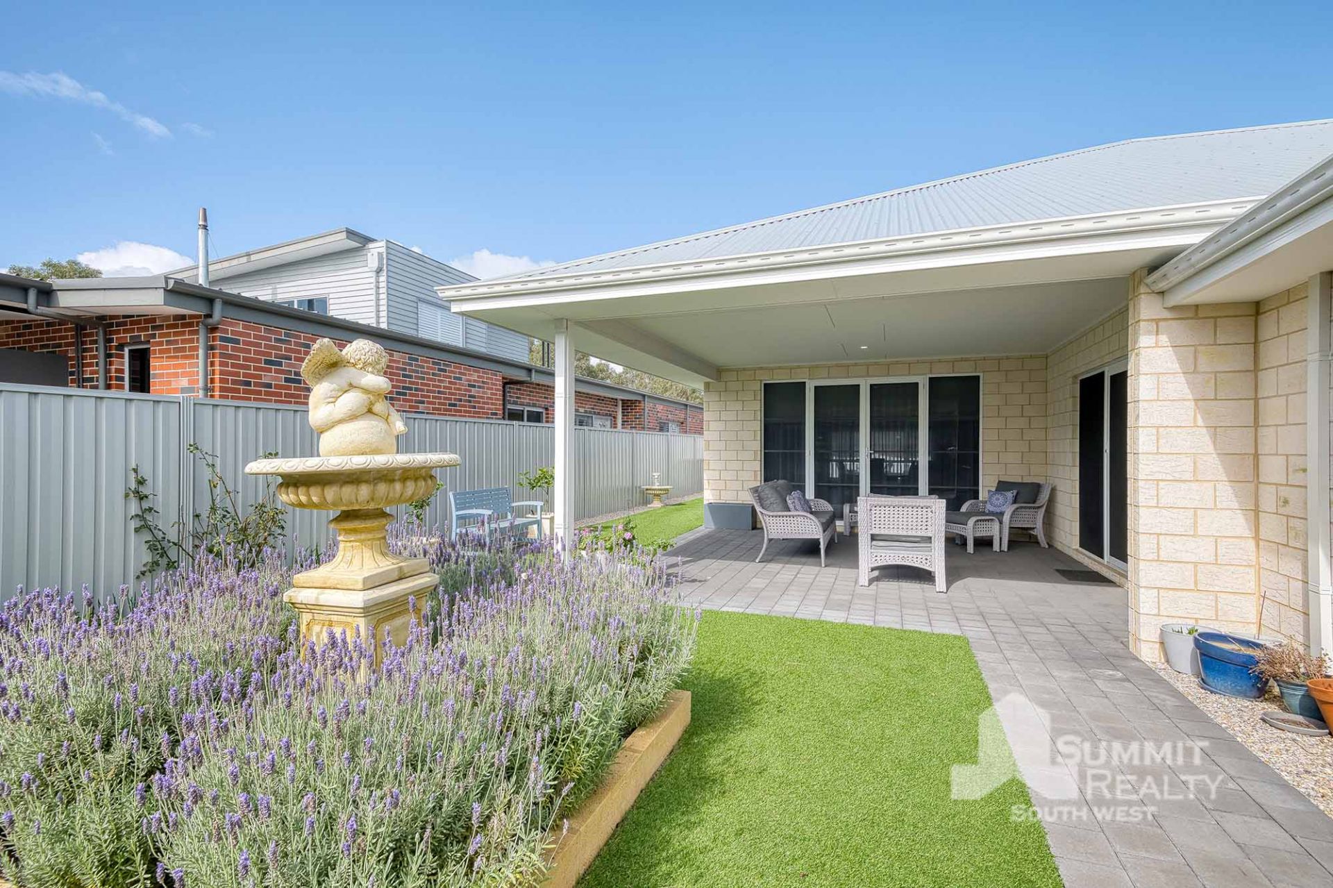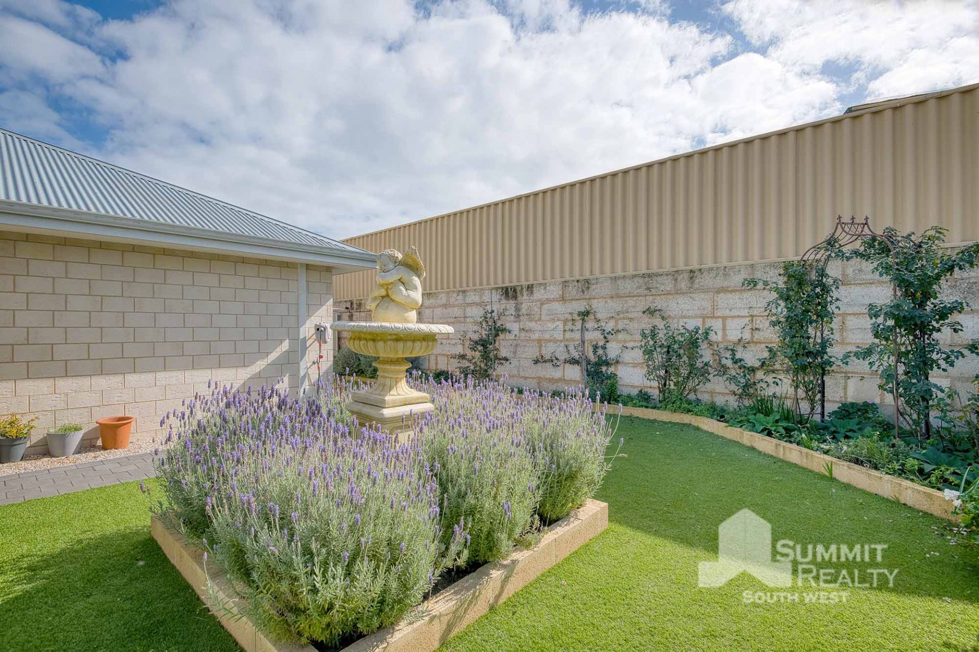 Immaculate established gardens with artificial grass