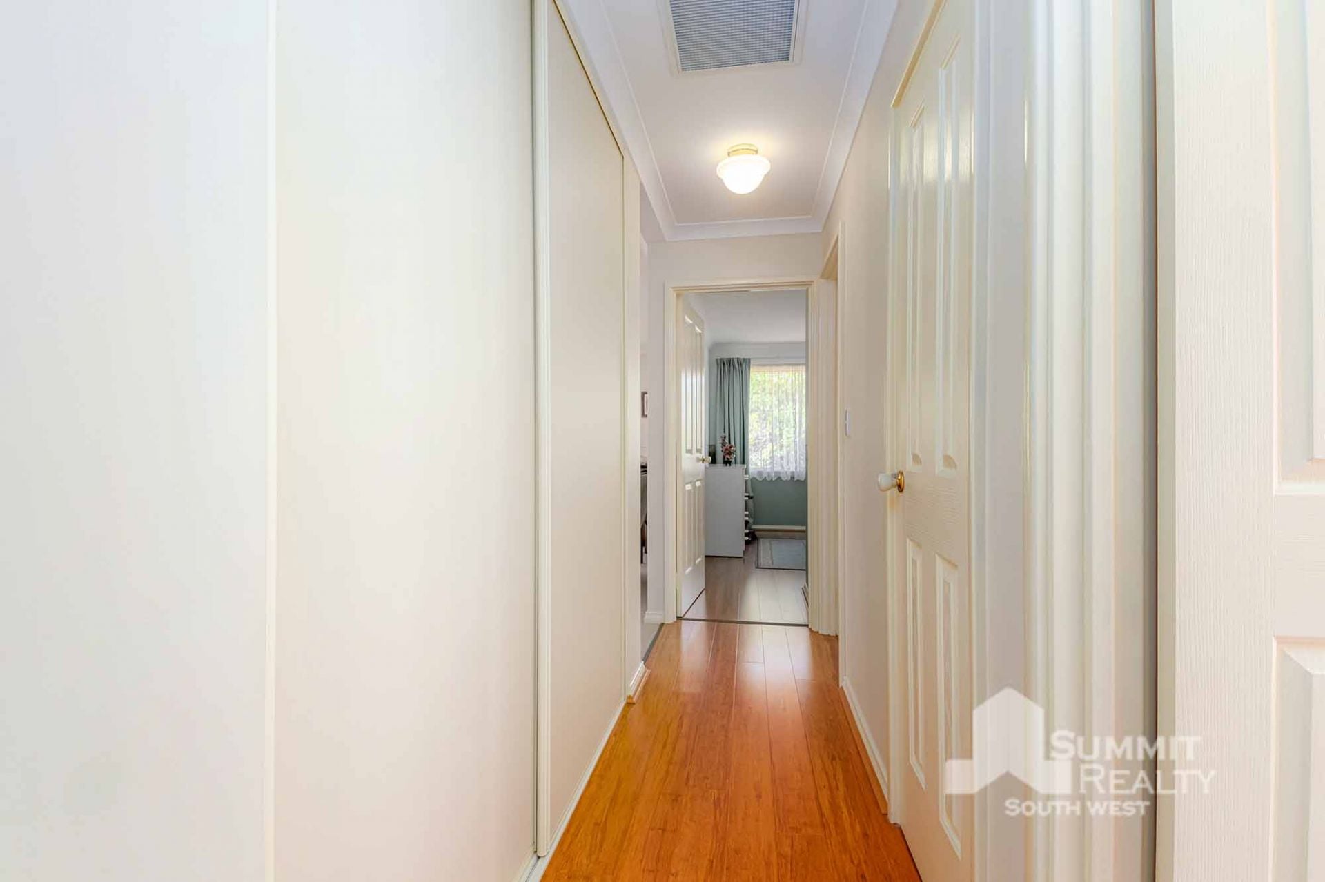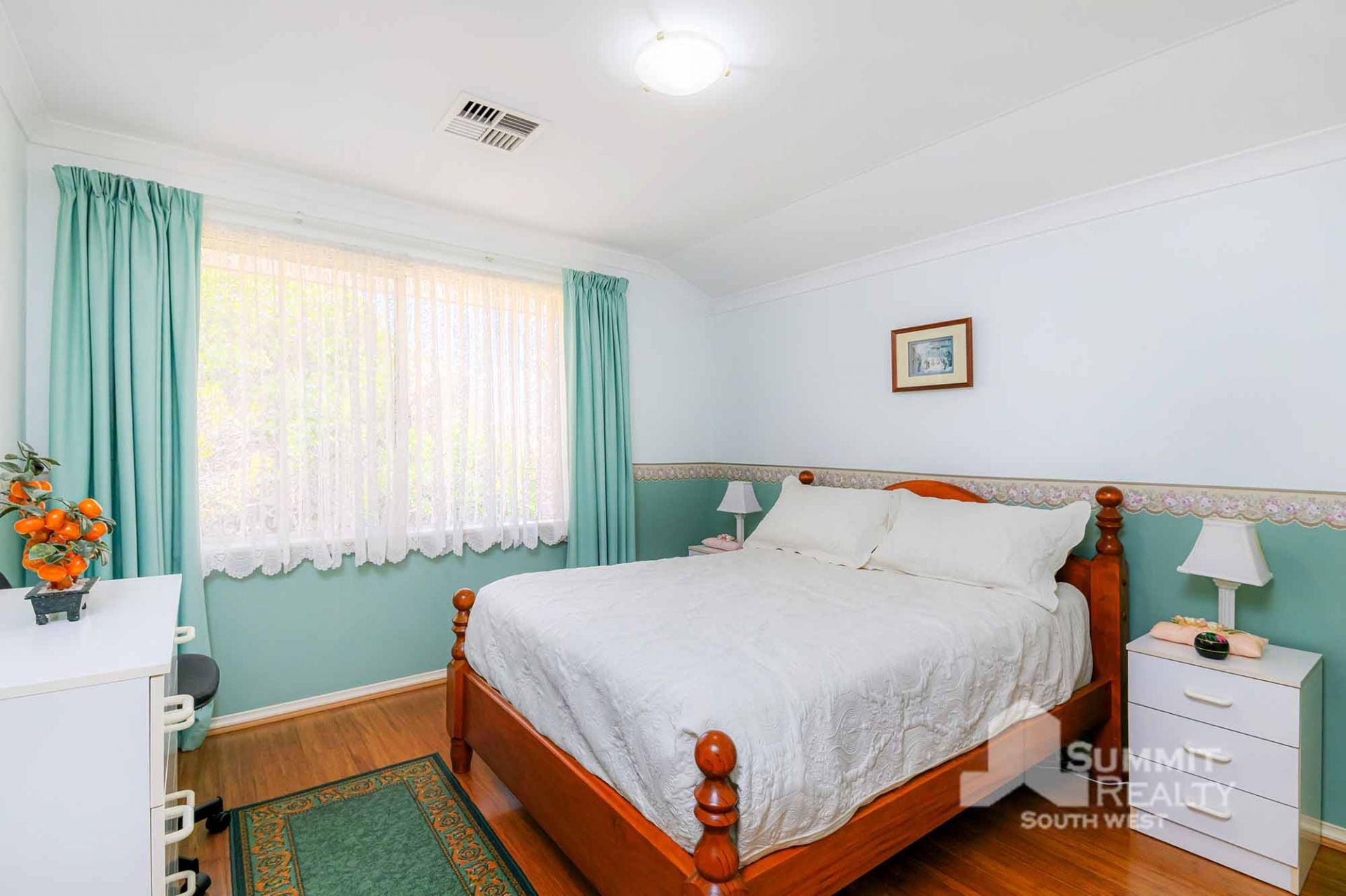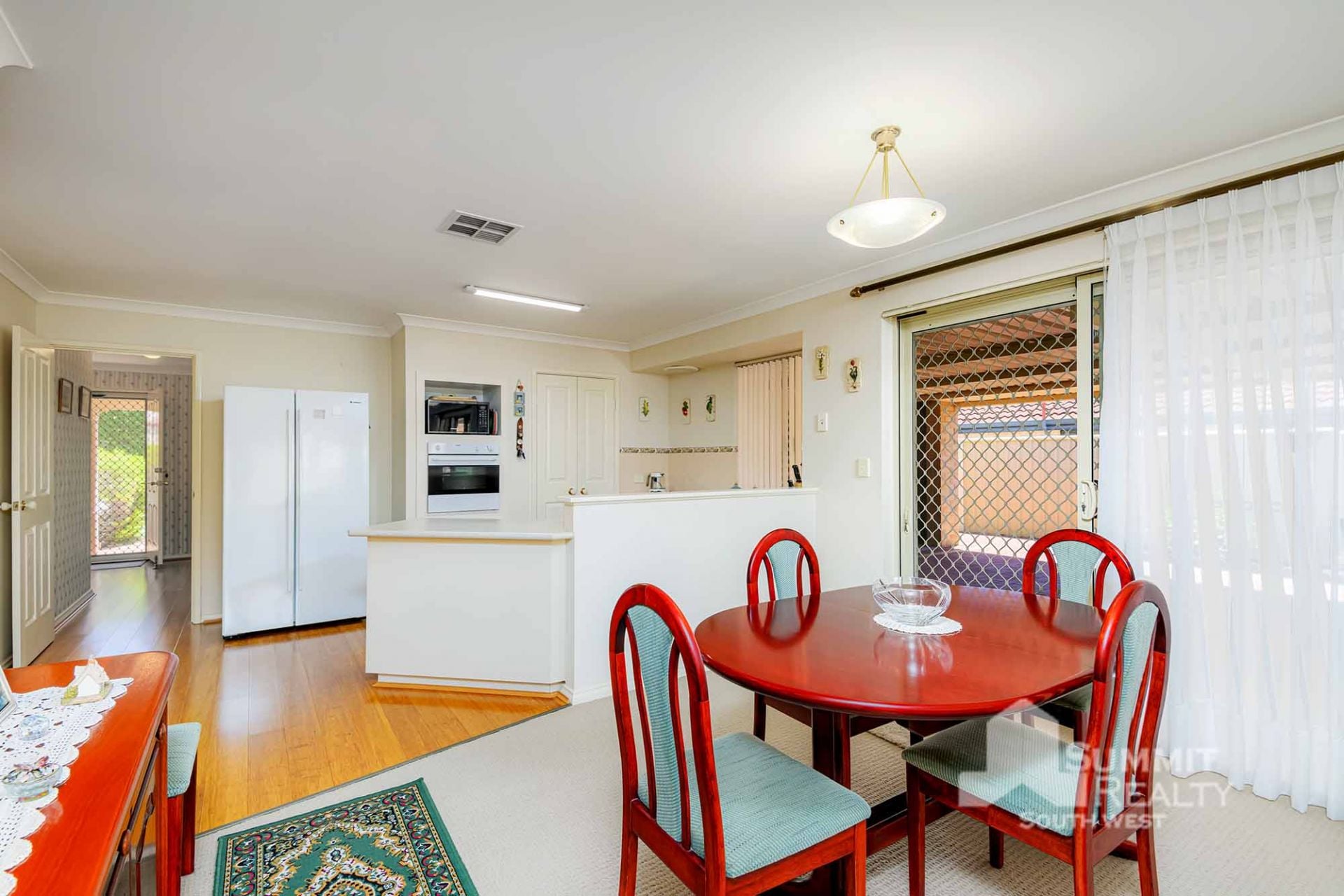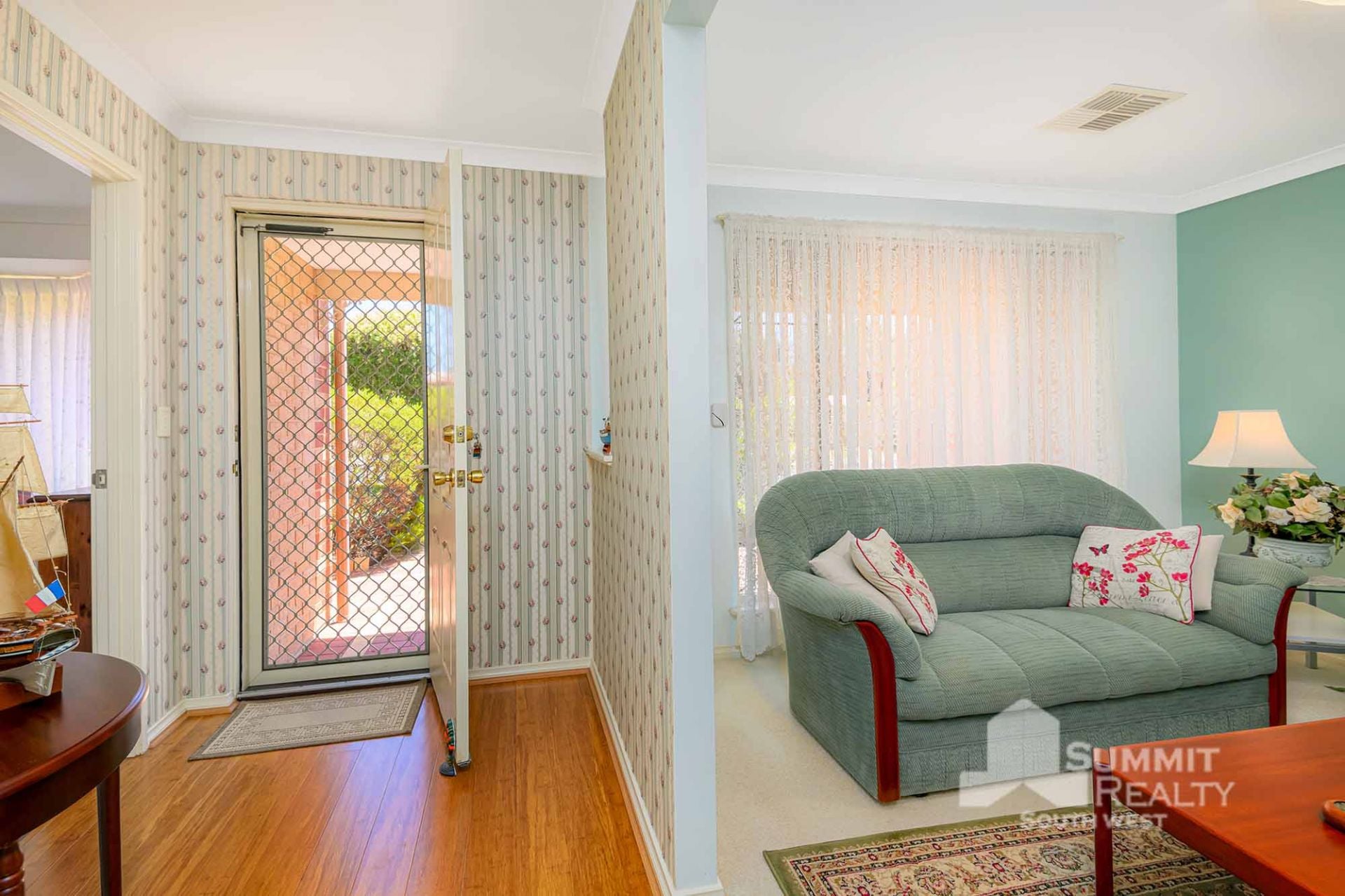 Stylish Finishes: Bamboo flooring flows through the main living areas, while the lounge boasts soft sheers and carpet for added warmth.