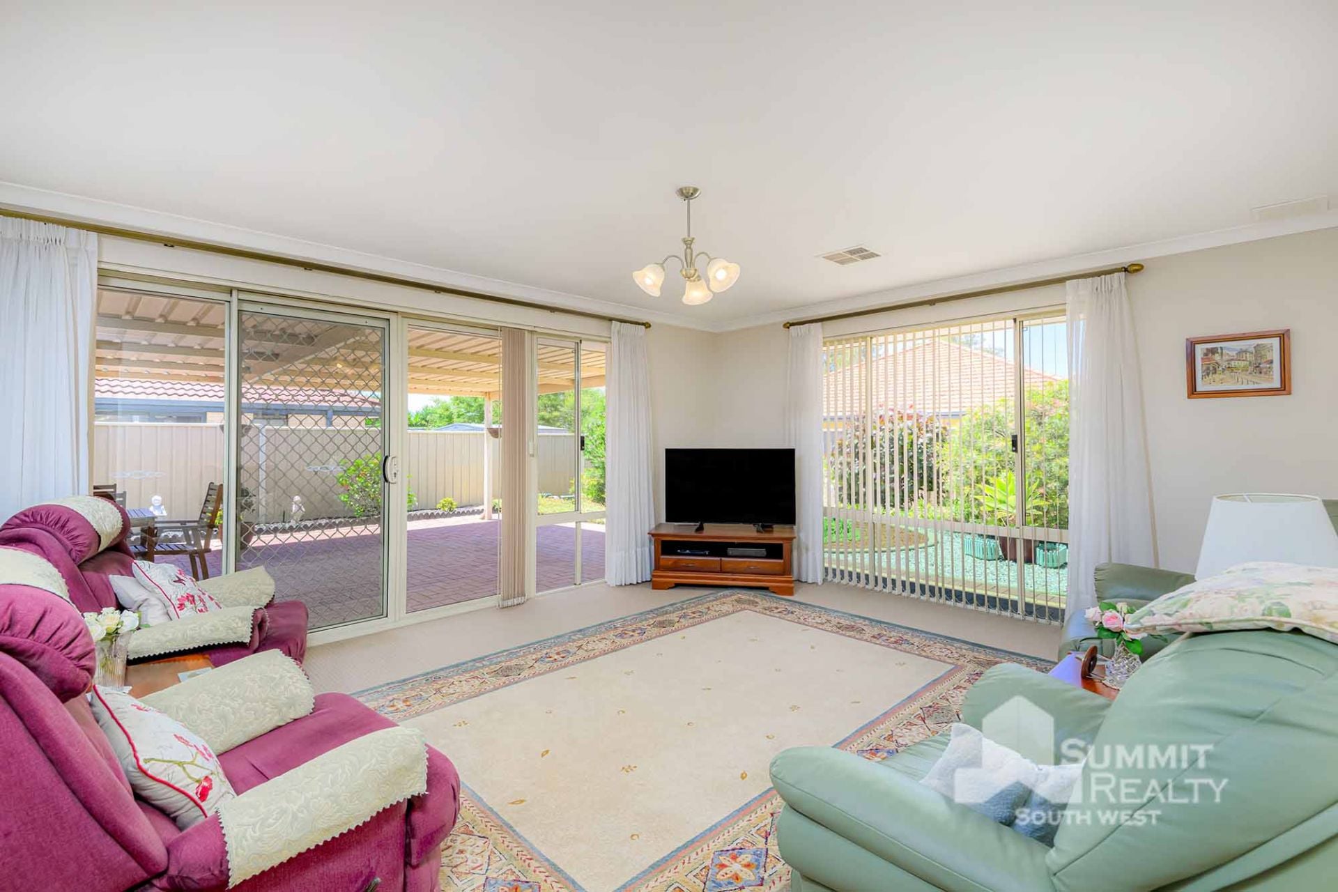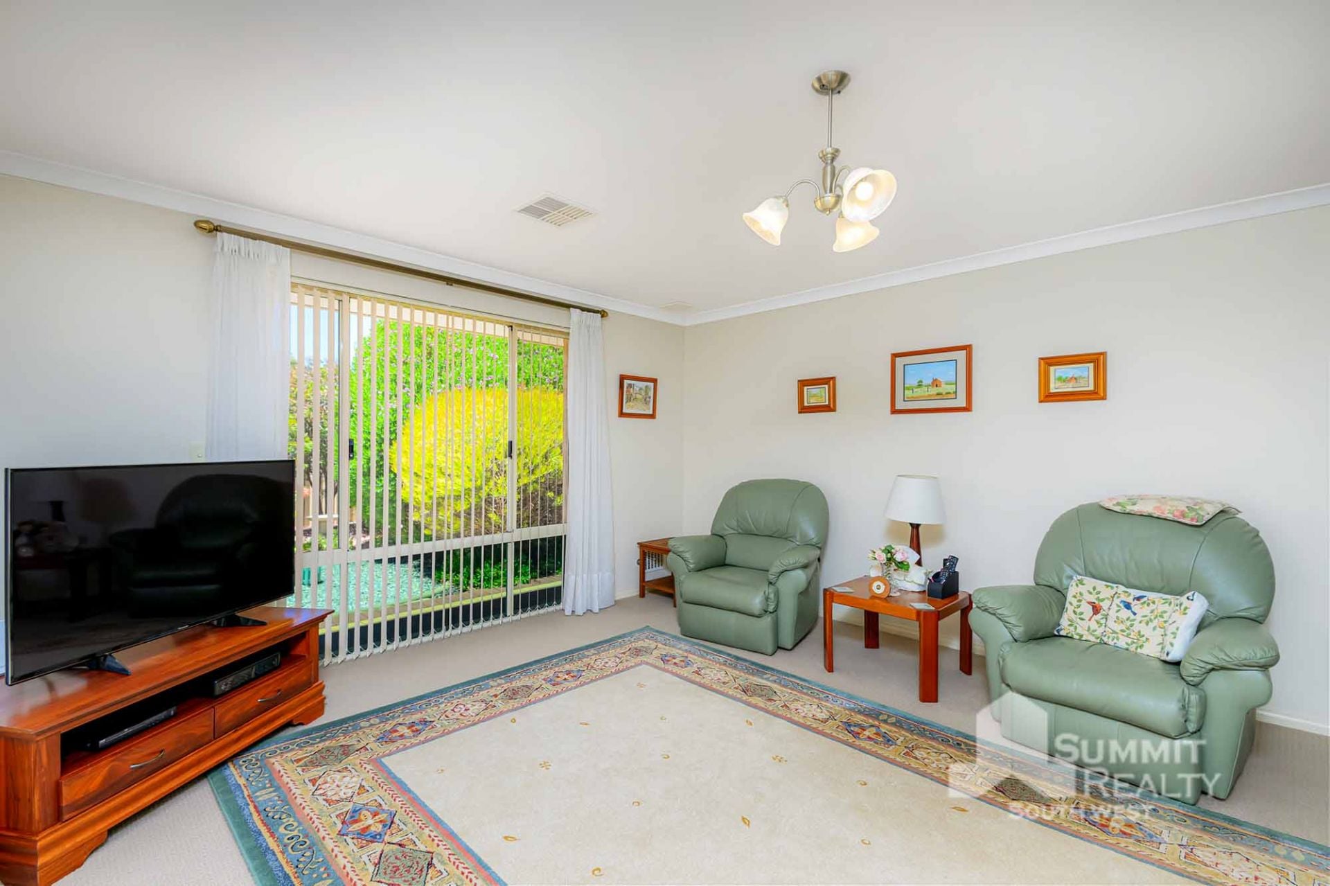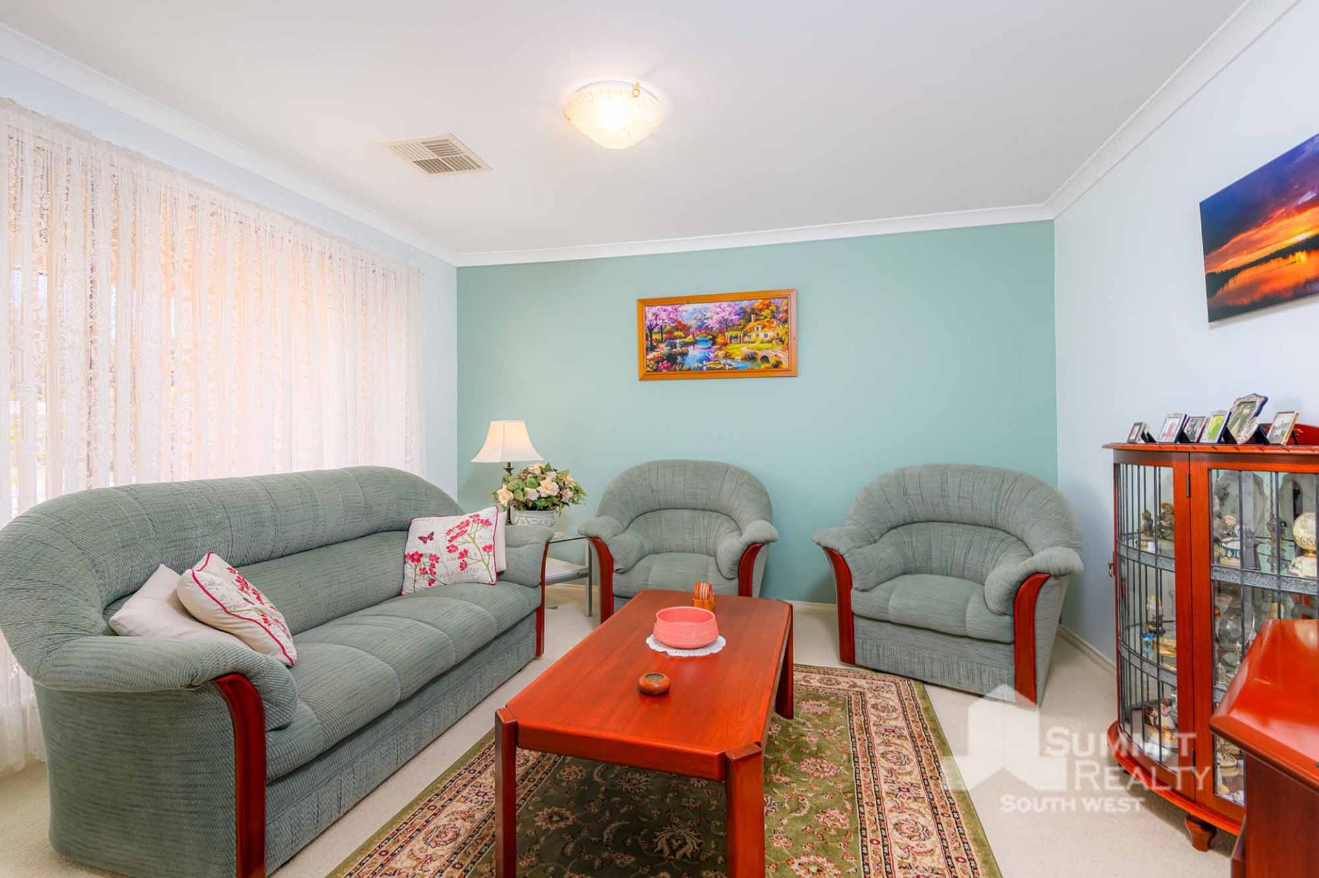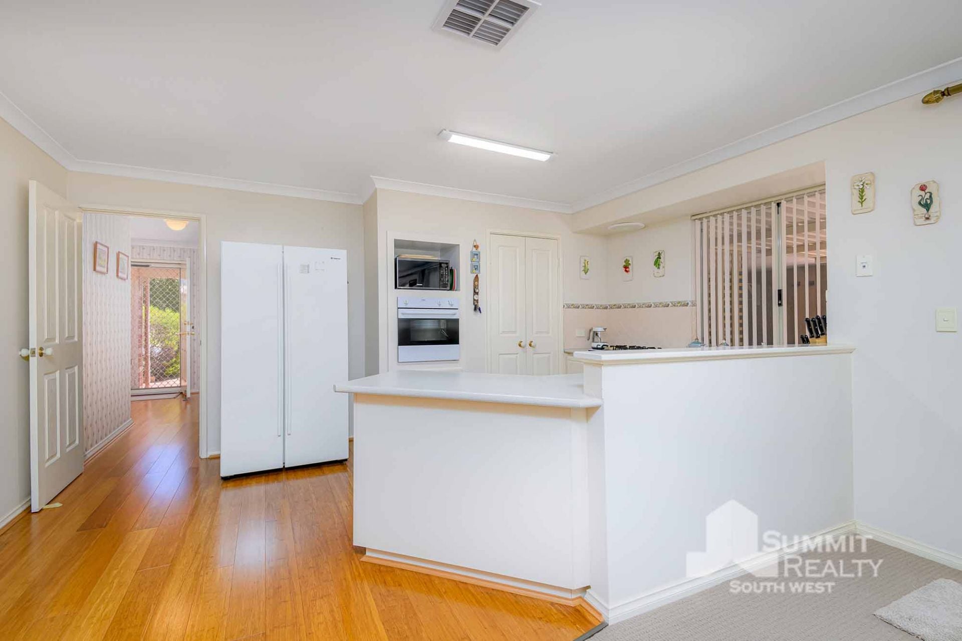 Stylish Finishes: Bamboo flooring flows through the main living areas, while the lounge boasts soft sheers and carpet for added warmth.