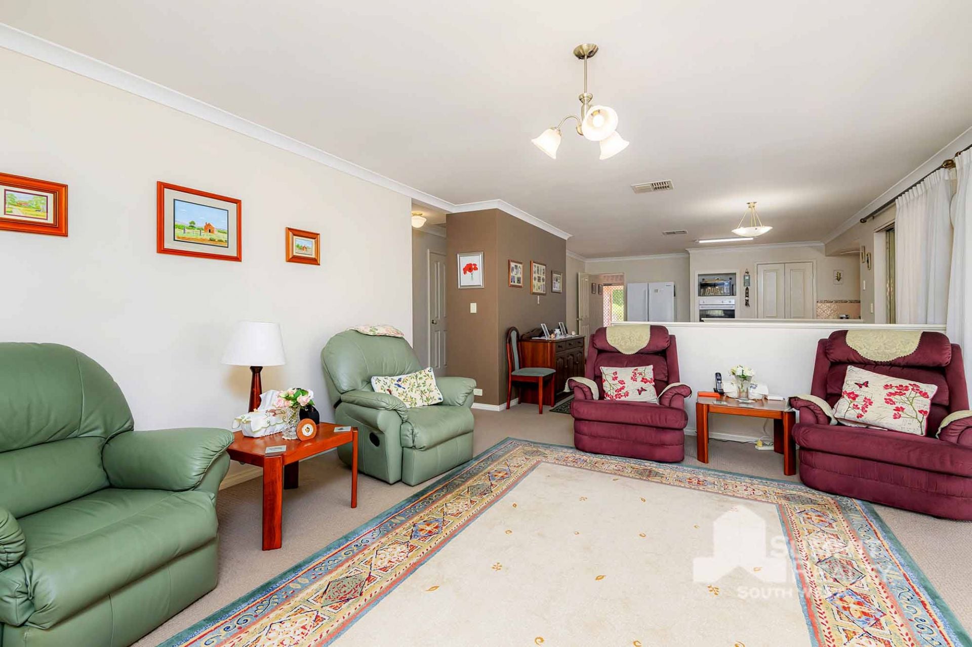 Open-Plan Kitchen and Dining: Well-maintained kitchen with ample bench space, a double-door pantry, and a clear view of the dining and family areas.