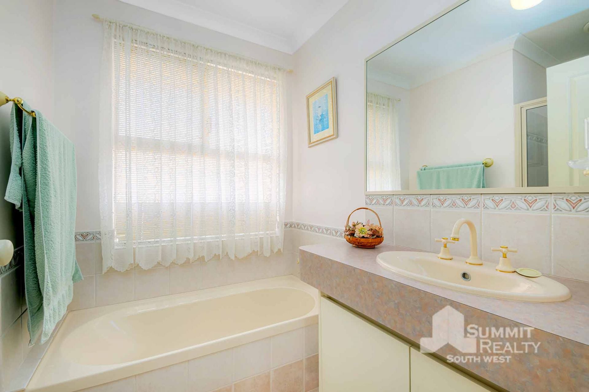 Tasteful Updates: A neutral, updated main bathroom renovated in 2000 adds timeless charm.