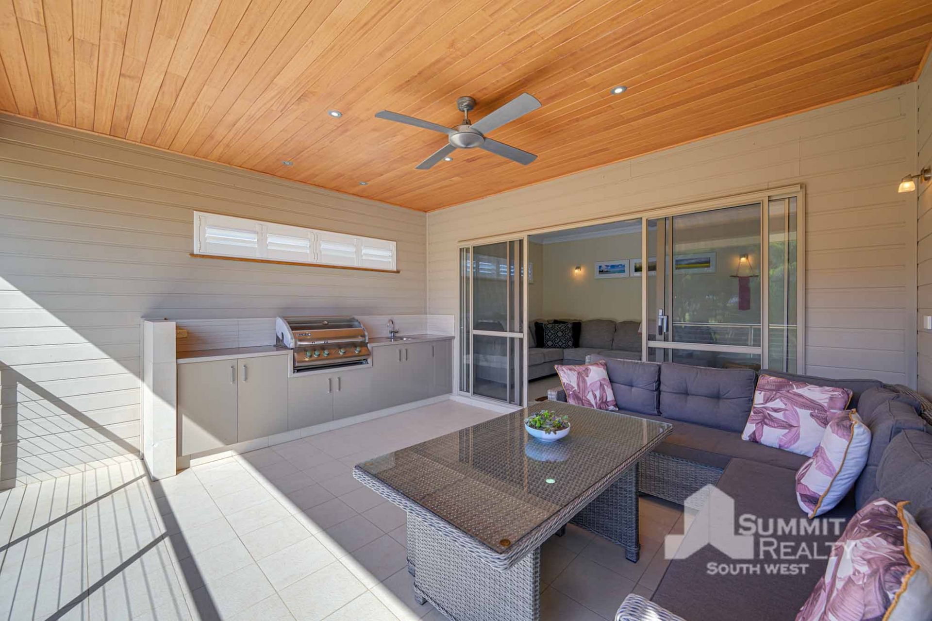 Alfresco area with fitted BBQ, Essa stone benchtop, underfloor heating and cooling