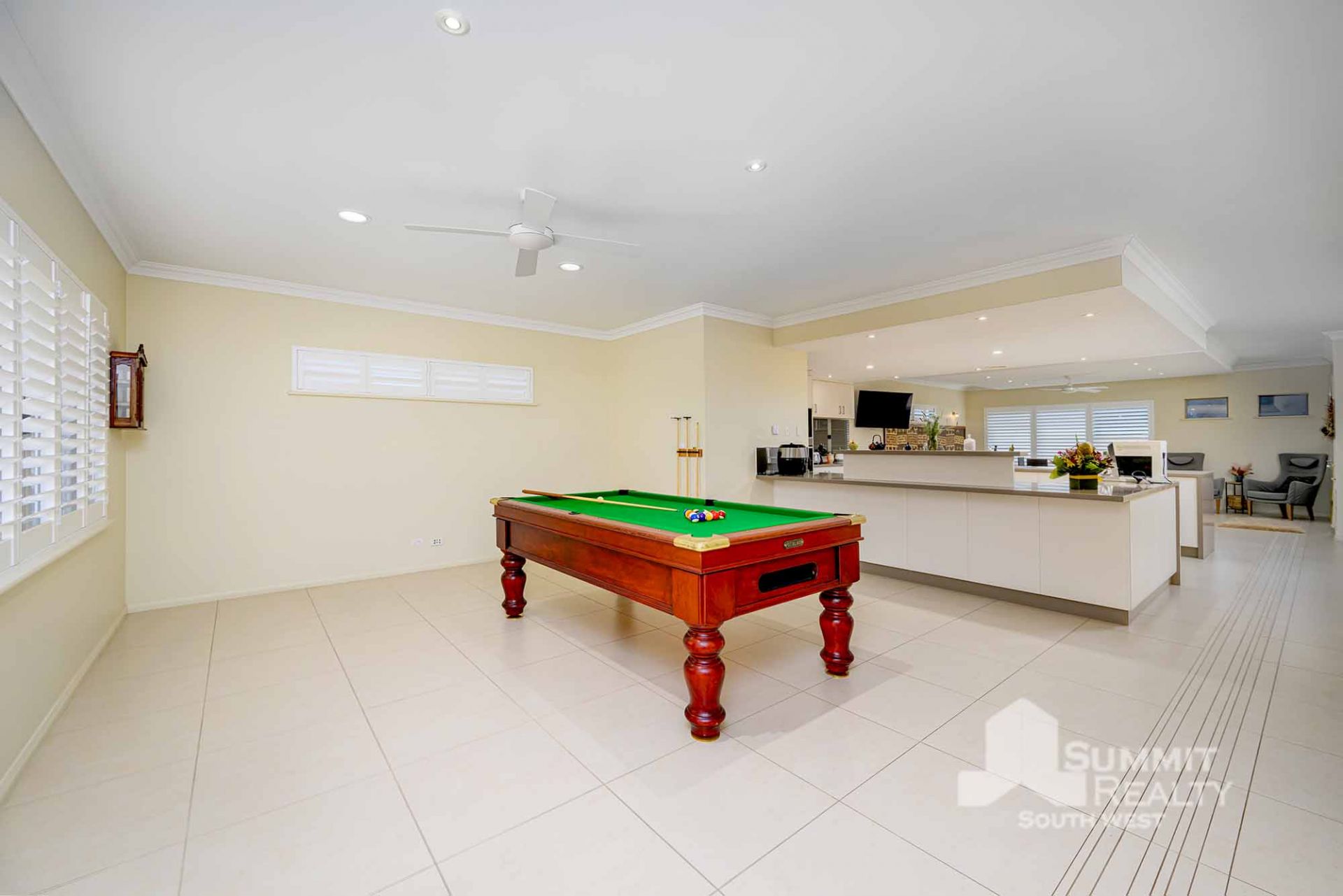 The layout of this home has been meticulously planned to offer both privacy and functionality. On the ground floor, you’ll find all four bedrooms, the spacious main bedroom which boasts a double walk-in robe and a luxurious ensuite. Three additional secondary bedrooms, each with built-in robes, offer ample space for family members or guests. The main bathroom features a separate bath and shower, and there is also a separate toilet with a powder basin for added convenience. This floor also includes a games room with a large walk-in storage cupboard, perfect for family entertainment, as well as a designated activity room specifically designed for homework or study creating the perfect environment to foster focus and minimize distractions.