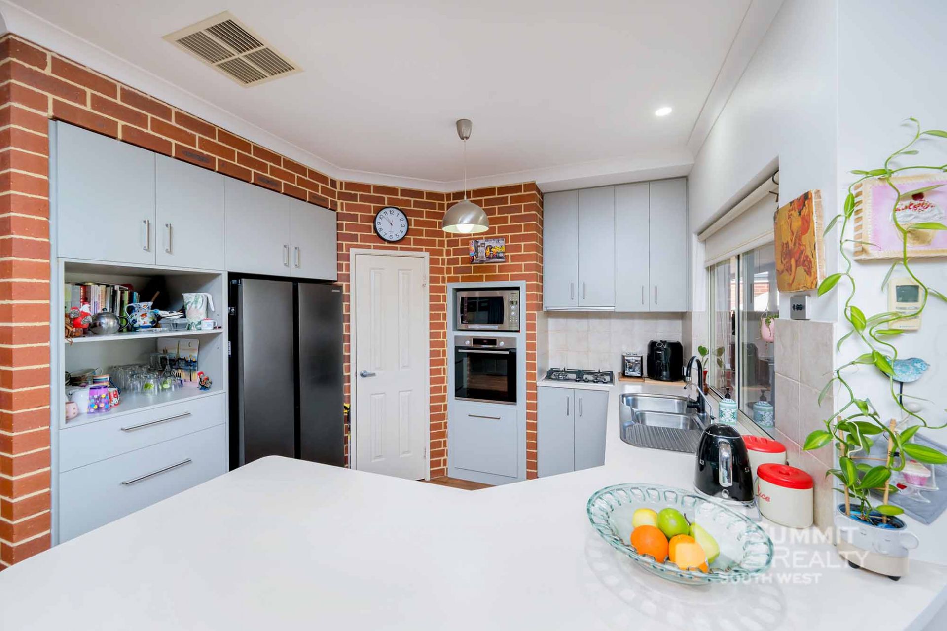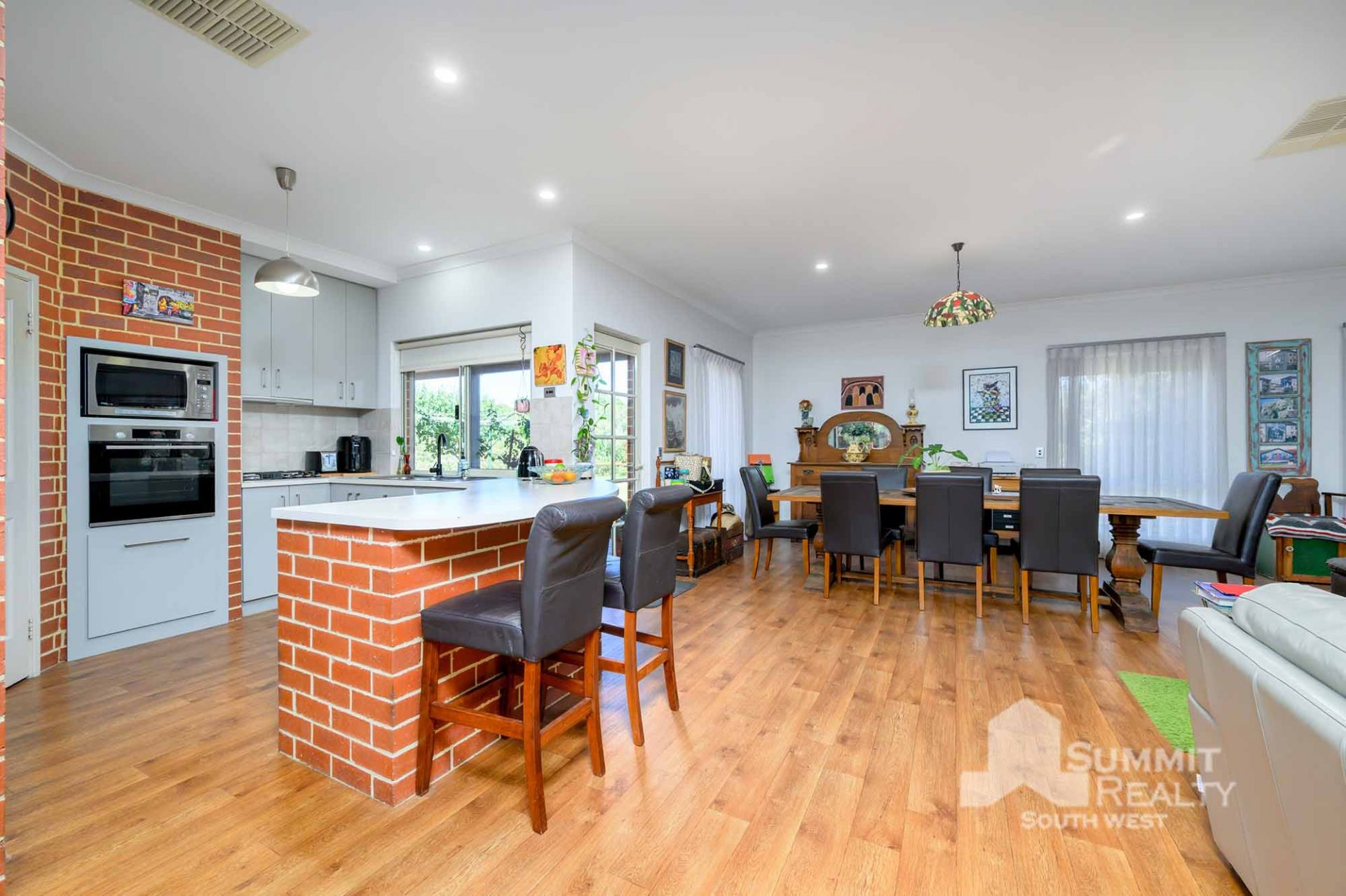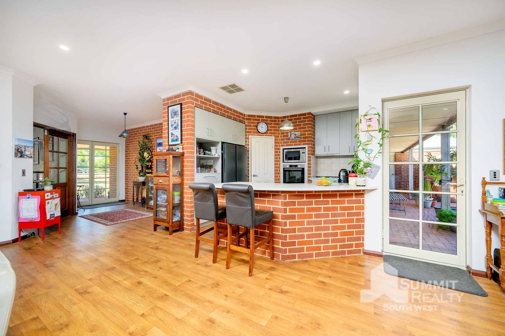 Roller shutters in living area and kitchen