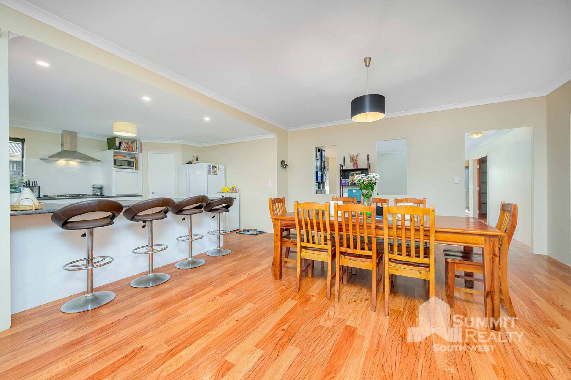 Set on a generous 752m² block, the home showcases beautiful timber laminate flooring throughout. creating a seamless flow from room to room. The heart of the home is the expansive open-plan living, dining, and family area-designed for connection and comfort, whether you’re hosting guests or enjoying a quiet night in.
