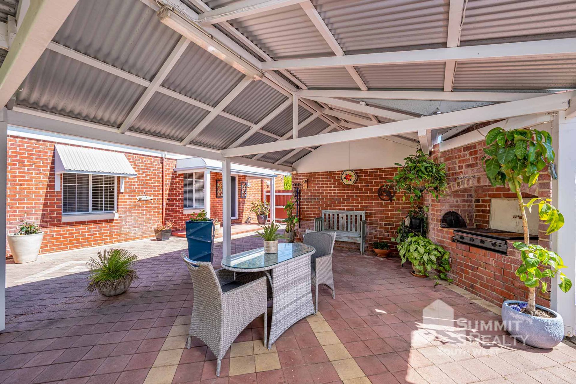 The residence offers three bedrooms and two bathrooms, along with a separate lounge and dining area that provides space for everyone to relax or entertain. Outside, you’ll find a covered living area that’s perfect for gatherings, while the brick workshop and single carport add further value and convenience. The well-maintained gardens are serviced by bore and reticulation, making it easy to keep the surrounds green and tidy year-round.