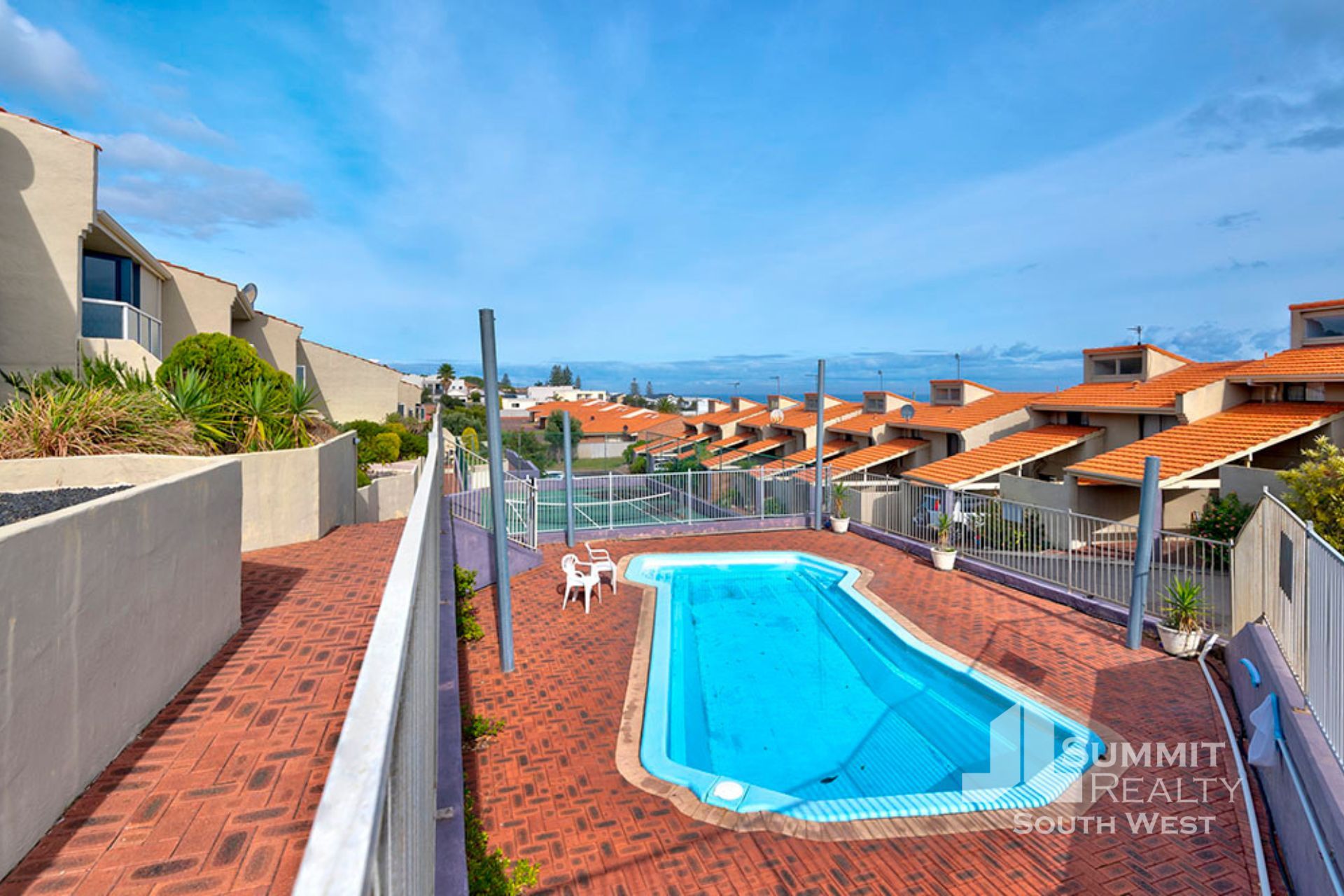 Private access to complex swimming pool and tennis court
