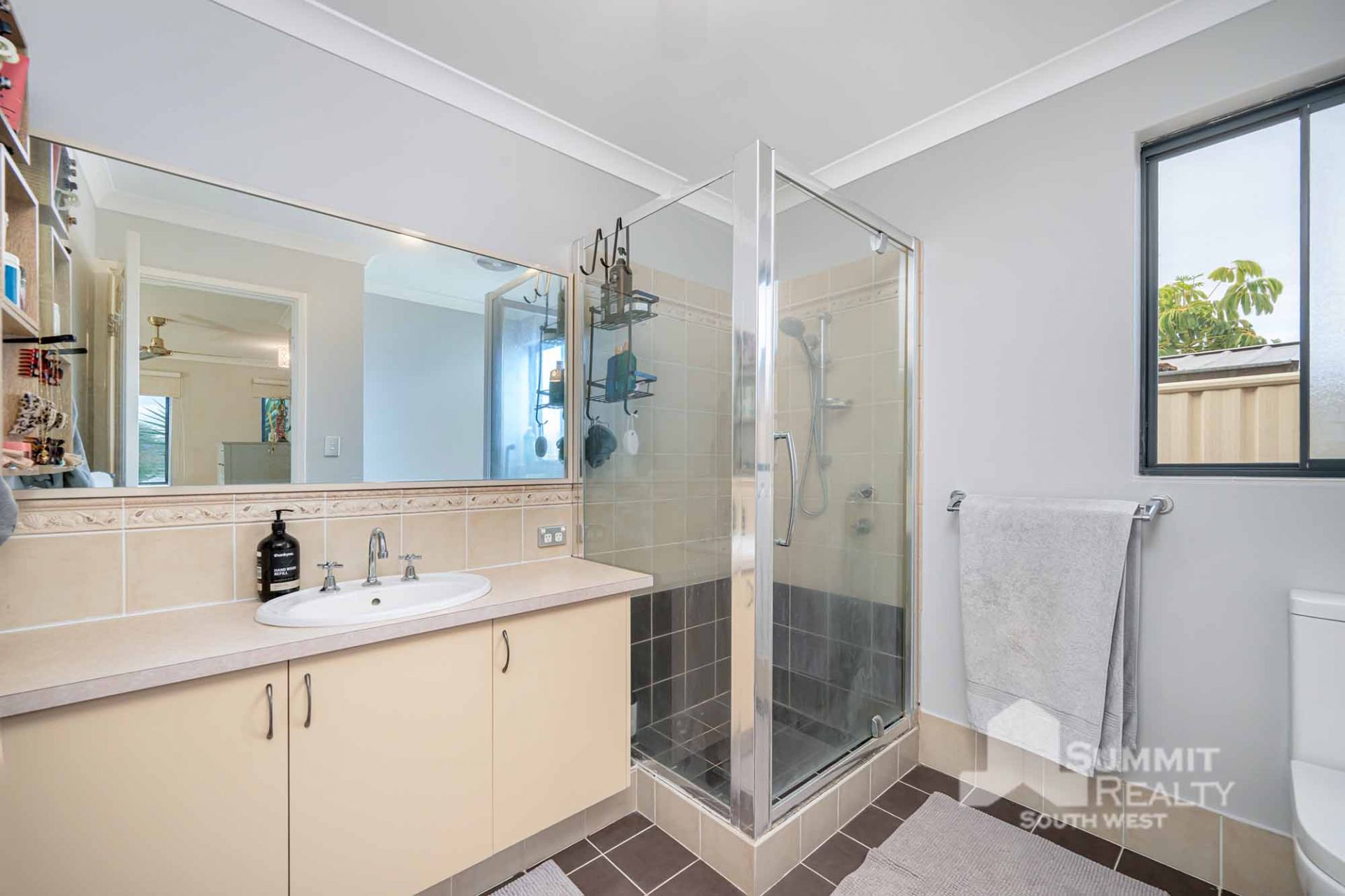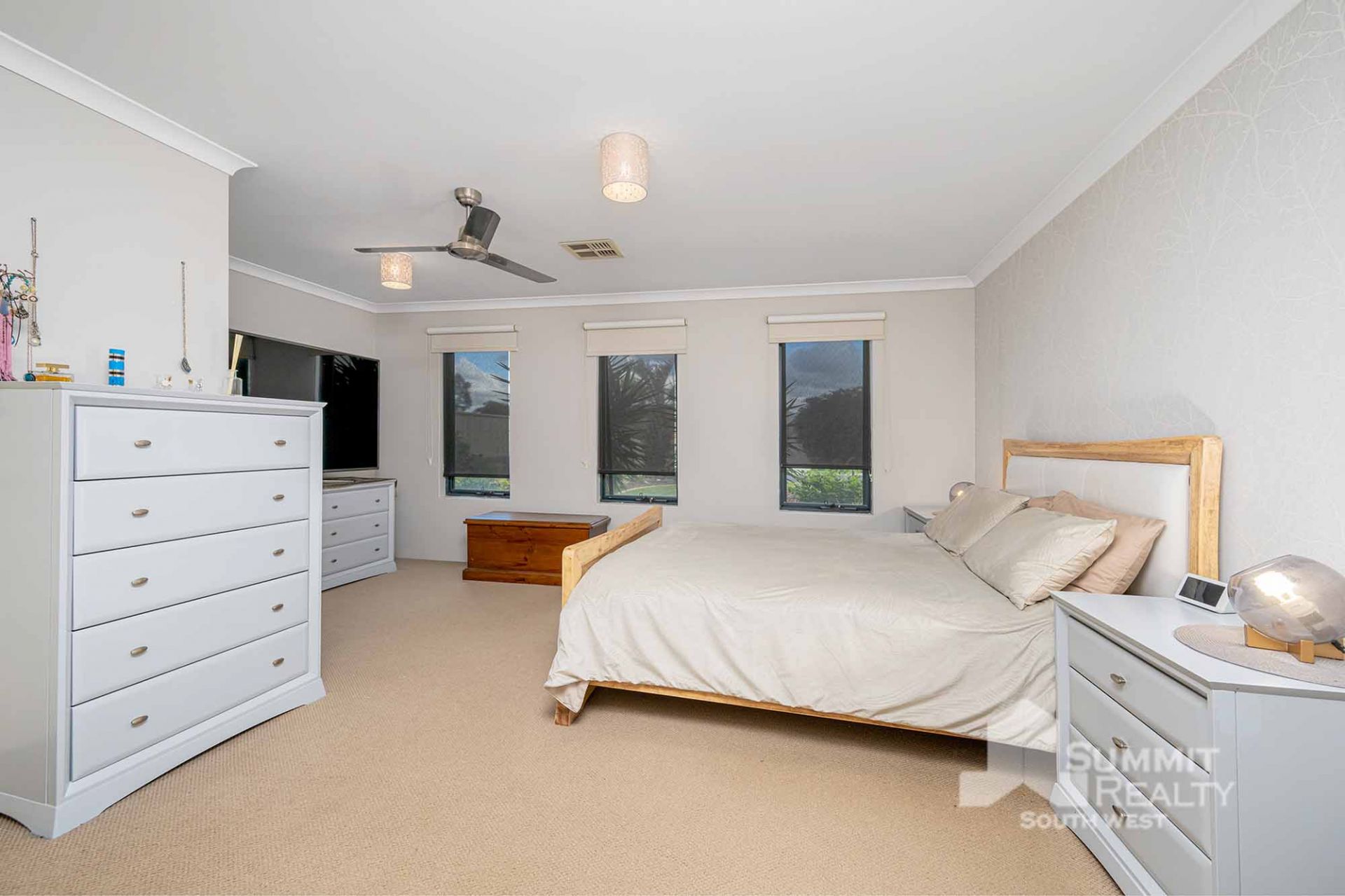 Stepping inside, the sense of space is immediate. A dedicated theatre provides a private retreat for movie nights or quiet downtime. Opposite, the main bedroom offers a peaceful escape with double robes, a ceiling fan, blackout blinds, and zoned air conditioning. The ensuite is well-sized and neatly presented, offering everyday convenience.