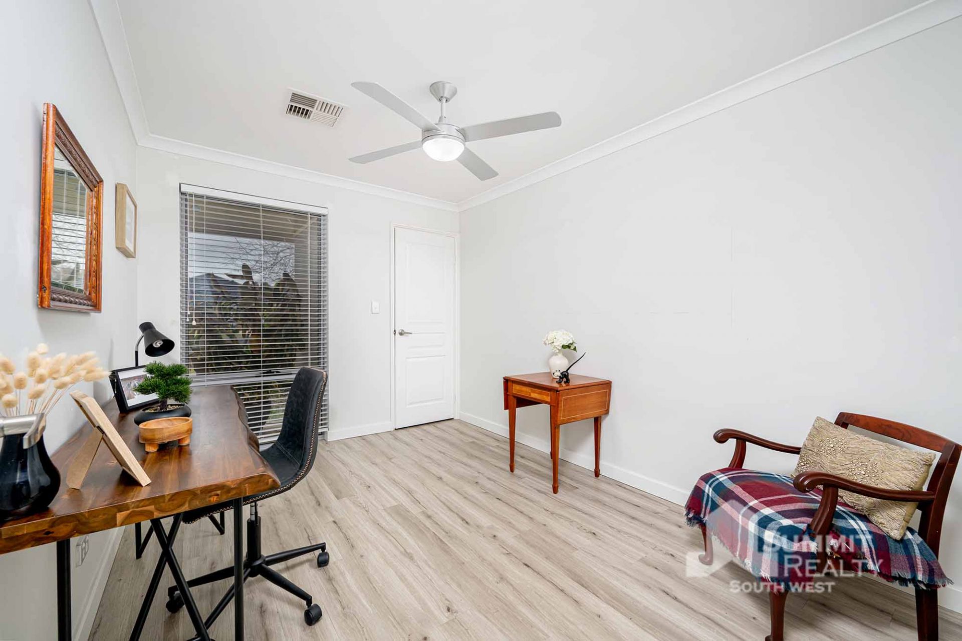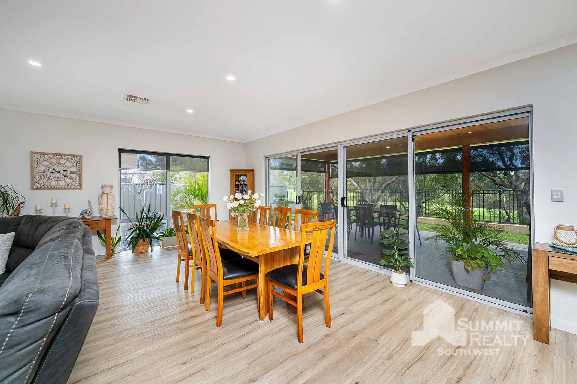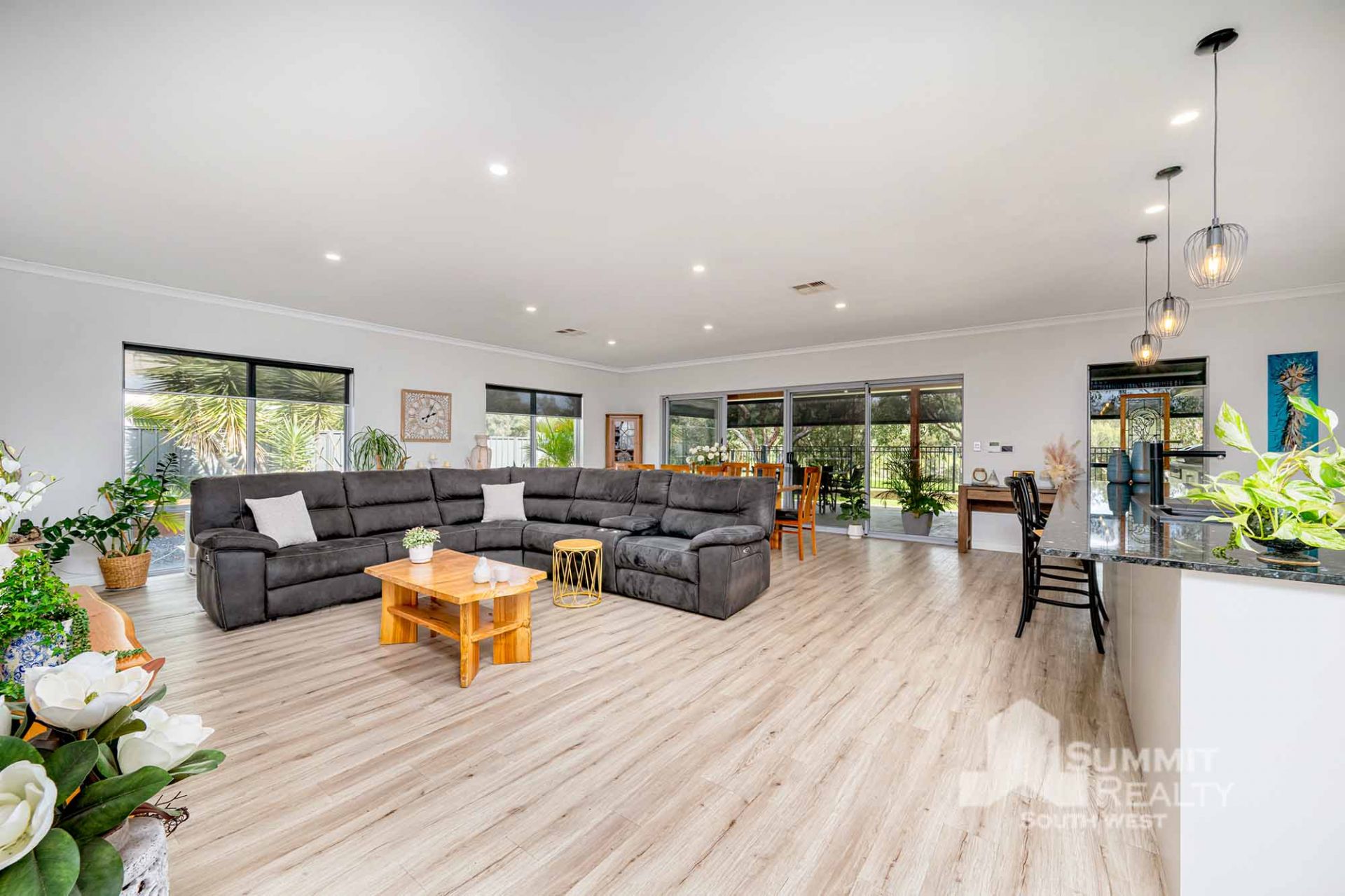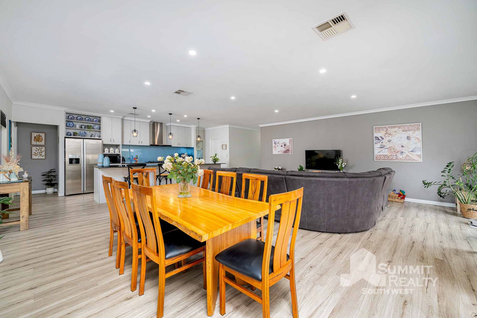 Light wood neutral flooring and downlights throughout