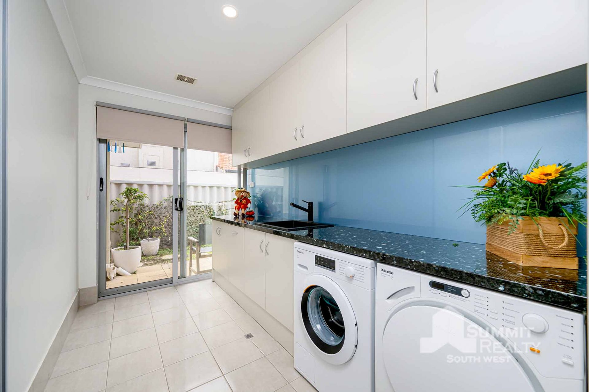 Laundry with external access, generous bench space and storage