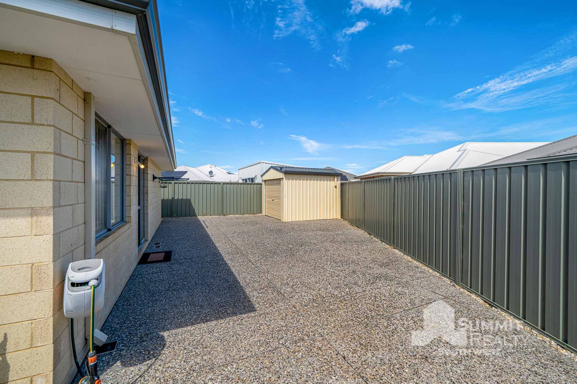 Dual driveway & colourbond storage shed