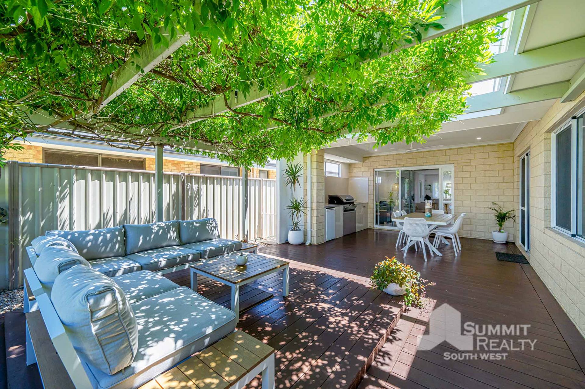 Decked outdoor entertaining area with built-in BBQ