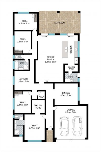 The deluxe master suite provides parents with their own private sanctuary, complete with a spacious walk-in robe, double bowl vanity and separate toilet.