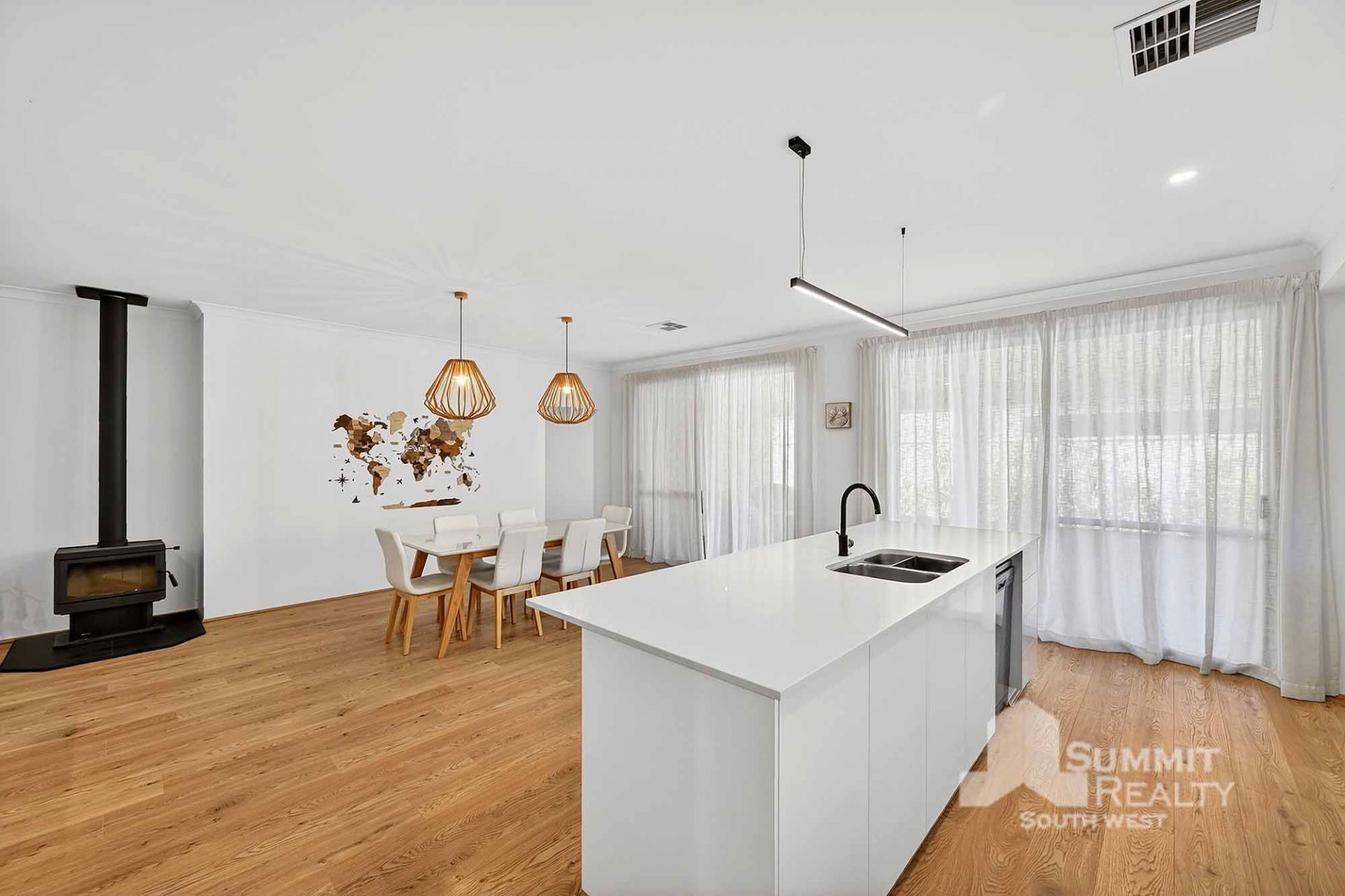 At the heart of the home is a stunning open-plan living zone with soaring 31c ceilings and a cosy woodfire – the perfect setting for family movie nights or relaxed weekends together. The gourmet kitchen will impress any home chef, featuring stone benchtops, stainless steel appliances, a scullery and an abundance of bench space overlooking the expansive family and dining area.