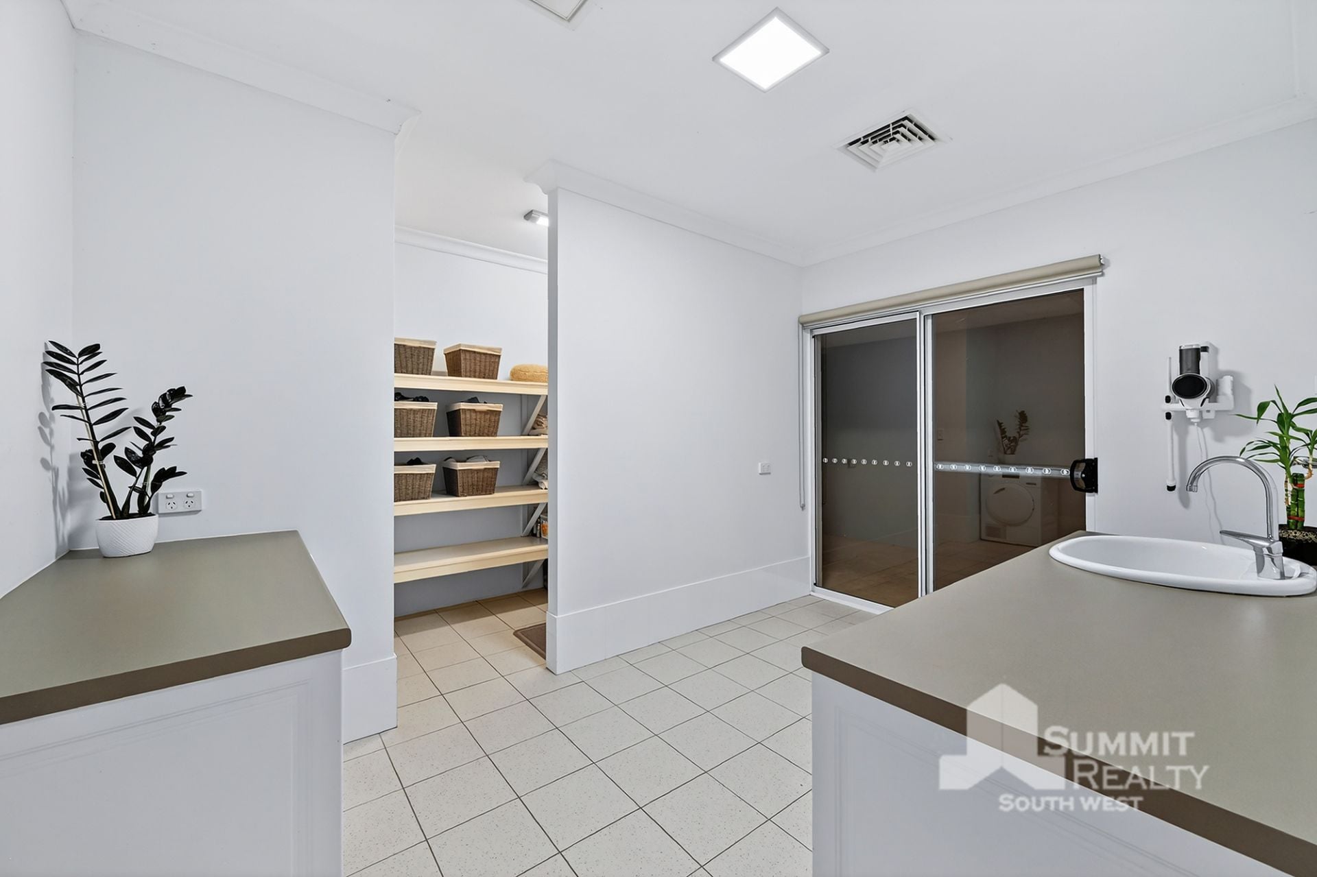 Spacious laundry with walk in storage