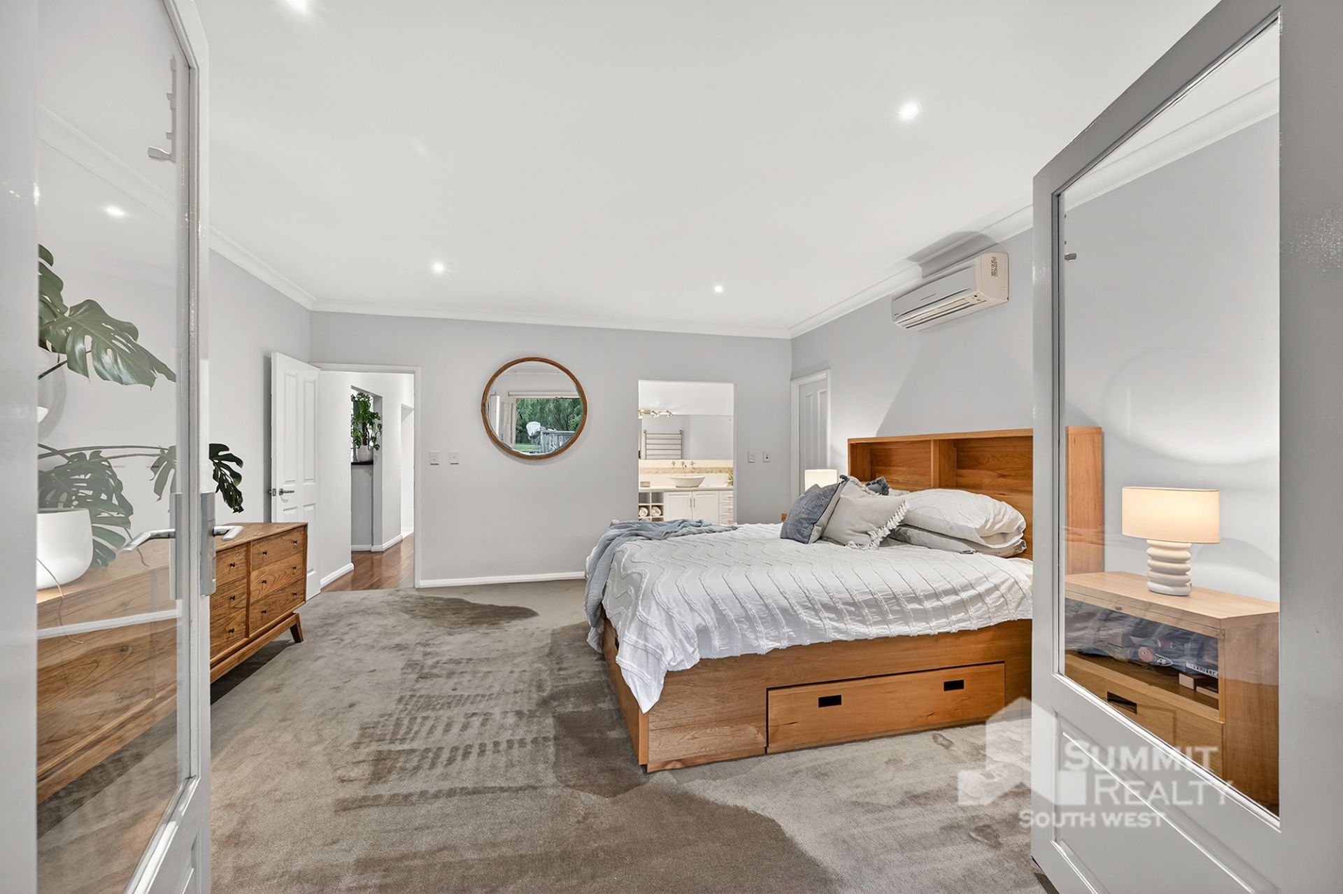 Grand master suite with double walk in robes, large ensuite and double doors opening to a private patio